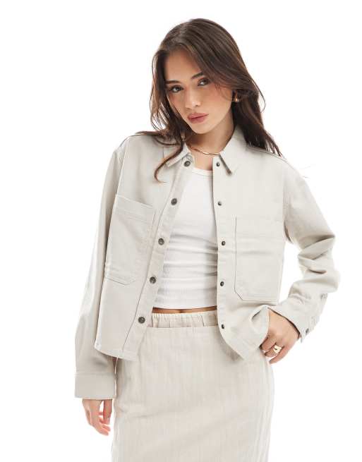ONLY – Ljusbeige skjortjacka i bomull med fickdetalj