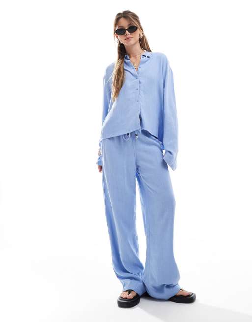 ONLY – Ljusblå, långärmad skjorta i linnemix, del av set