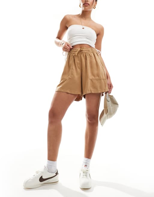 ONLY – Ljusbruna cargoshorts med hög resårmidja