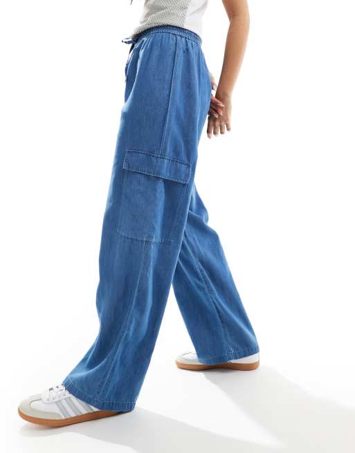 ONLY – Marla – Mellanblå vida cargobyxor i denim