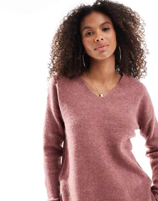 ONLY – Mörkrosa, slouchy tröja med v-ringning