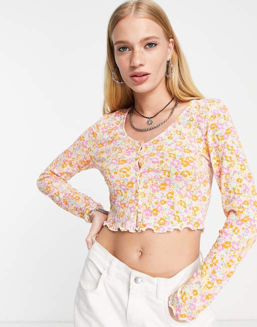 Only – Pastellfärgad, blommig kort kofta med ribbstruktur