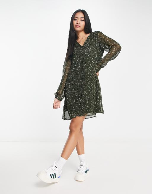 Only – Riley – Grön, blommig miniklänning med v-ringning