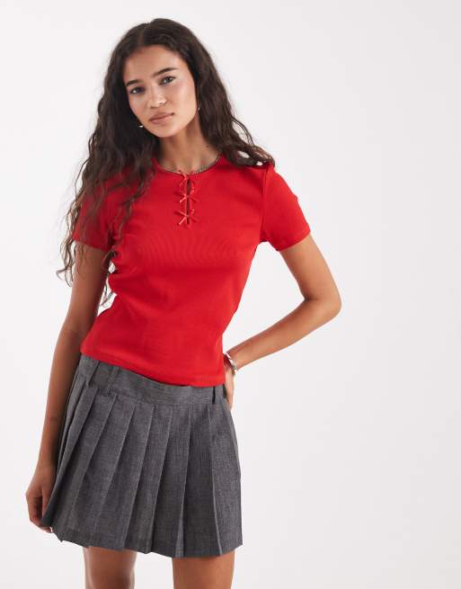ONLY – Röd t-shirt med rosetter