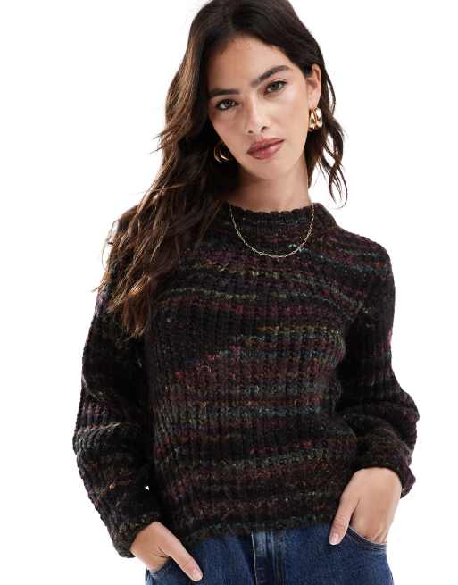 ONLY – Svart, flerfärgad tröja i stickad, melerad design