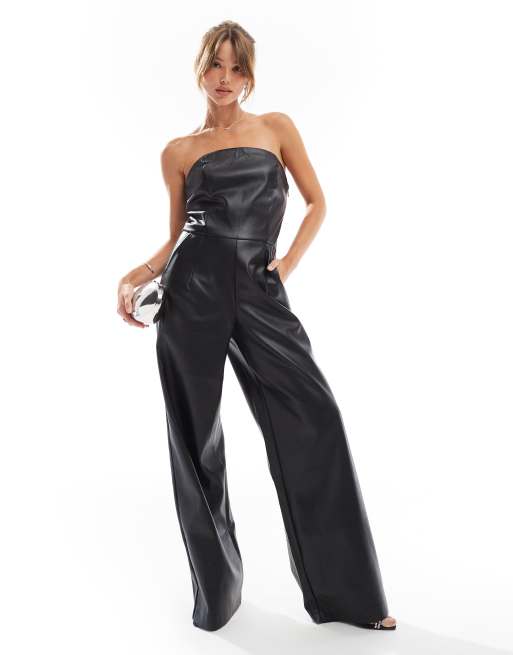 ONLY – Svart jumpsuit i läderimitation