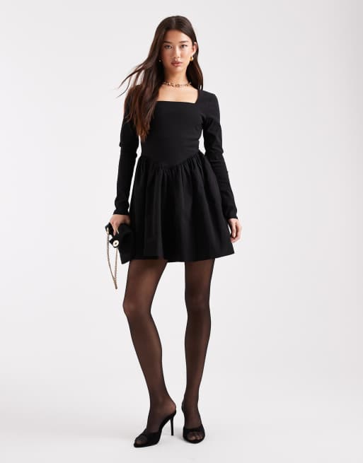 ONLY – Svart miniklänning med korsett och långa ärmar