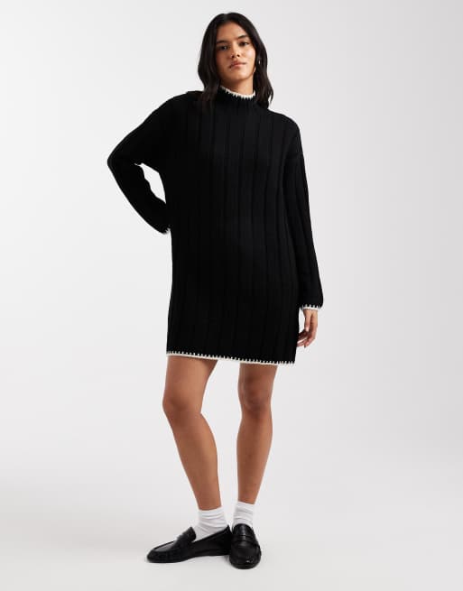 ONLY – Svart, stickad miniklänning med kontrasterande design