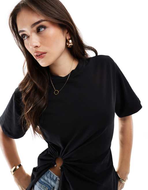 ONLY – Svart t-shirt med rynkade detaljer och ring