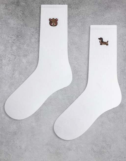 ONLY – Vita strumpor med hund- och björnbroderi, 2-pack