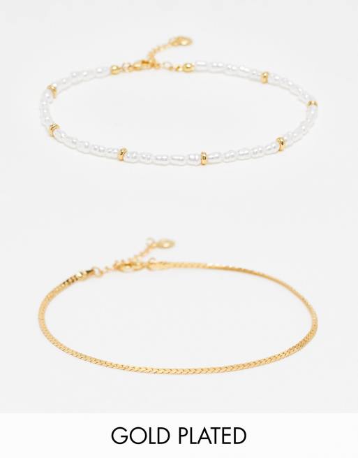 Orelia – Guldpläterade fotlänkar med pärlor och ormkedja, 2-pack