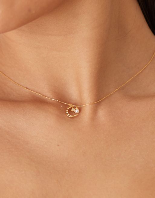 Orelia – Guldpläterat halsband med halvmåne, stjärna och pärlor