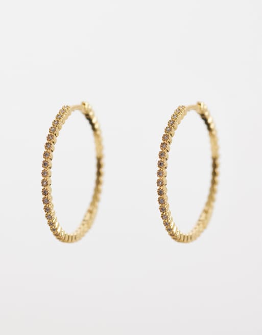 Orelia – Mellanstora creoler med små smyckesstenar och 18k guldplätering