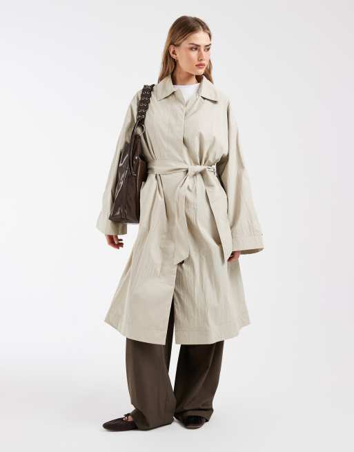 & Other Stories – Beige bilkappa i bomull och maxilängd med skärp