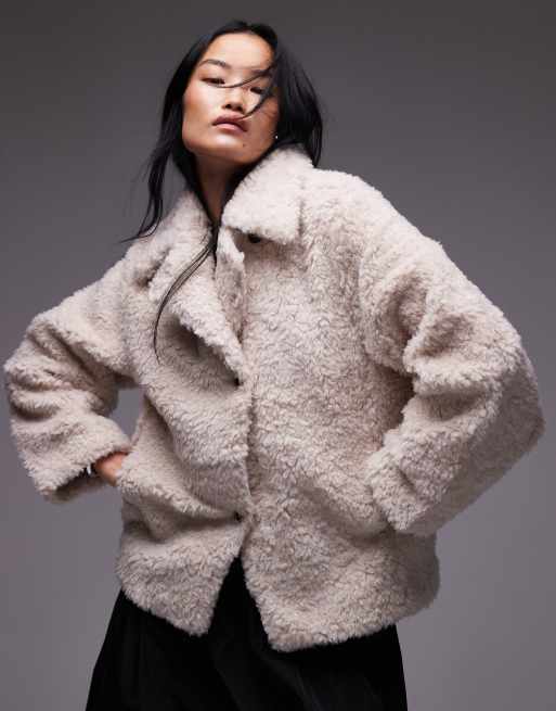 & Other Stories – Beige fuskpälsjacka med asymmetrisk knäppning framtill