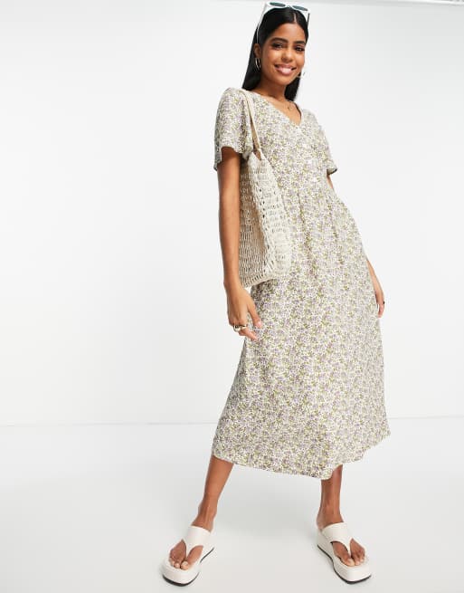 & Other Stories – Blommig midiklänning med utsvängd ärm