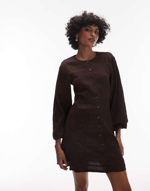 & Other Stories – Brun, smockad miniklänning med volymärmar