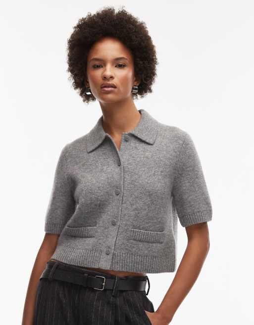 & Other Stories – Grå koftjacka i ylle med korta ärmar och foder