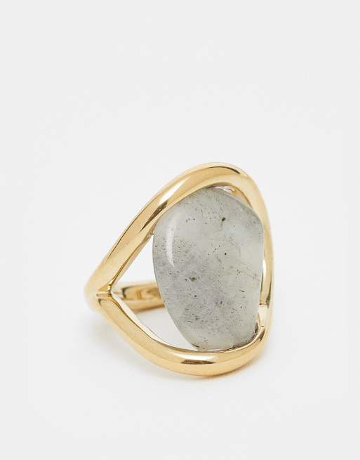 & Other Stories – Guldfärgad, skruvad ring med mörk, kakigrön sten