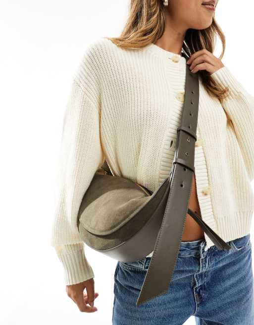 & Other Stories – Khakifärgad, halvmåneformad axelremsväska i mocka