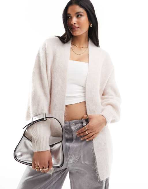 & Other Stories – Ljusbeige, fluffig, stickad kofta utan knäppning i yllematerial