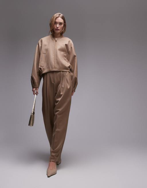 & Other Stories – Lux – Beigerandigt set med bomberjacka och byxor med skärp