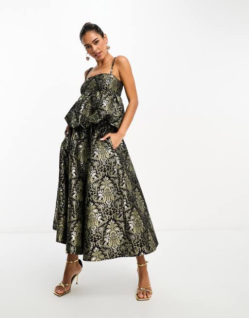& Other Stories – Midikjol med metalliskt jacquardmönster