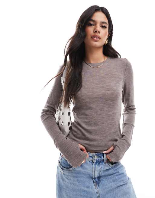 & Other Stories – Mullvadsfärgad topp i mohair- och ullmix med långa ärmar och tumhålsdetalj