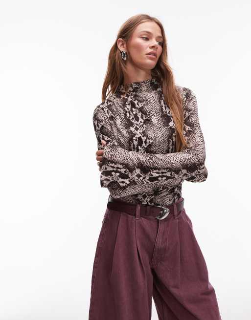 & Other Stories – Ormskinnsmönstrad topp i jersey med rynkad sida och långa ärmar