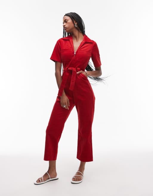 & Other Stories – Röd jumpsuit i manchester med skärp