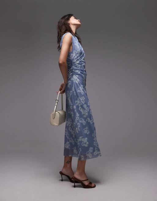 & Other Stories – Rosettmönstrad midiklänning med drapering i mesh