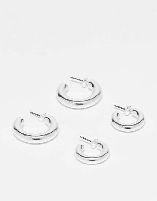 & Other Stories – Silverfärgade, minimalistiska creoler, 2-pack