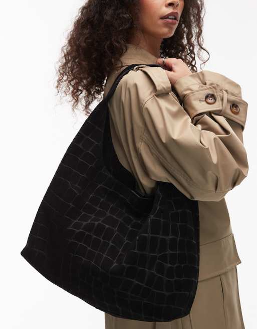 & Other Stories – Svart, stor toteväska i krokodilmönstrad mocka