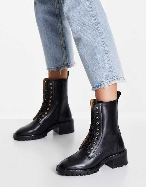 & Other Stories – Svarta boots med låga klackar och snörning av läder