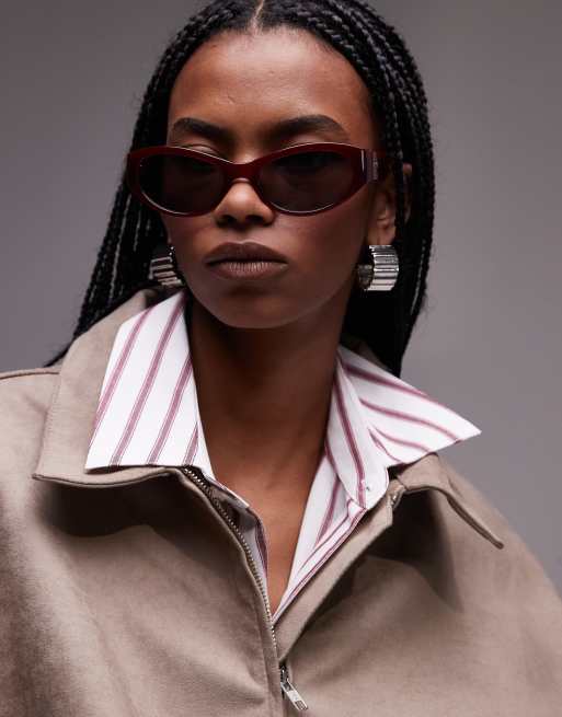 & Other Stories – Vinröda, ovala och smala solglasögon i cateye-modell