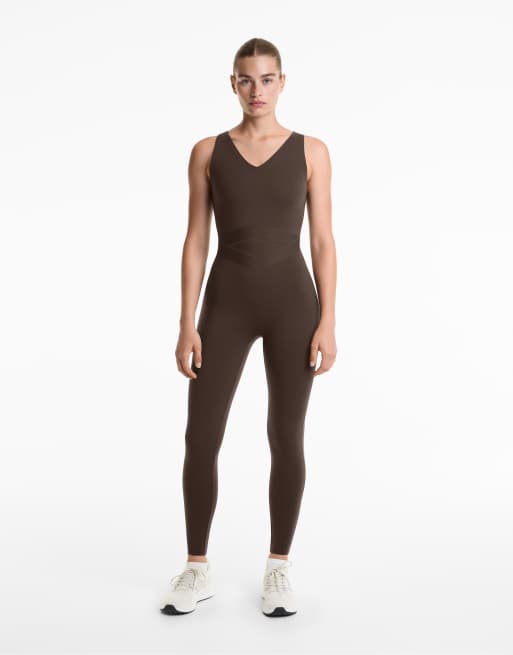 OYSHO – Brun, panelsydd jumpsuit med kompression