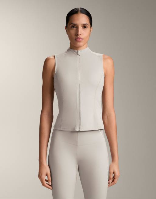 OYSHO – Brungrå, ärmlös t-shirt med dragkedja
