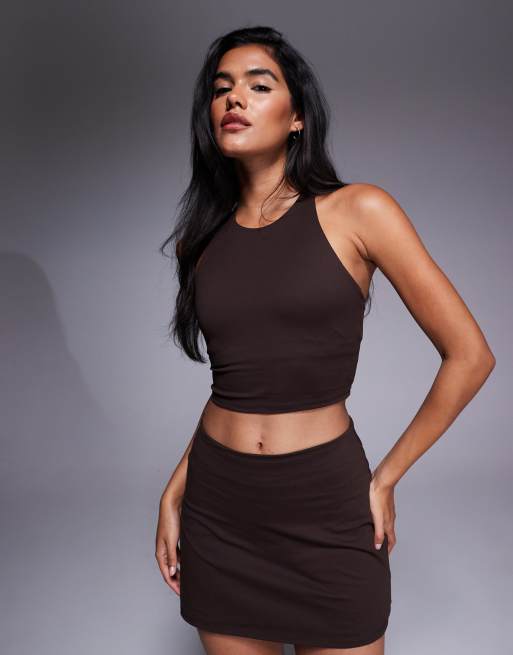 Oysho – Comfortlux – Ljusbrunt sportlinne med smala ryggband och kupor