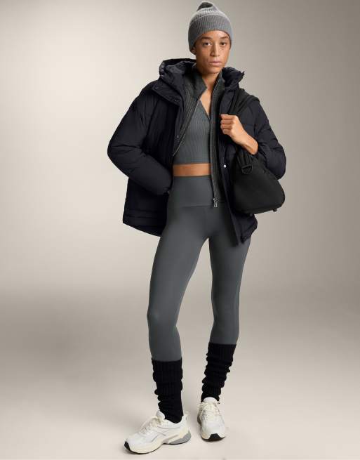 OYSHO – Comfortlux – Mörkgrå, ribbade leggings i ankellång modell med hög midja, 65cm