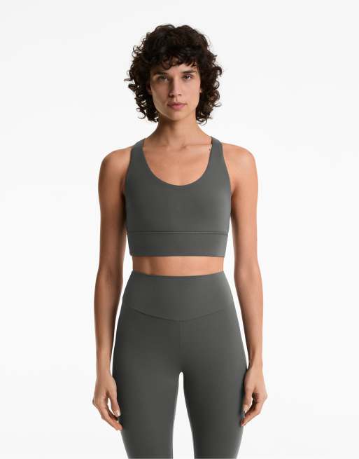 OYSHO – Comfortlux – Mörkt antracitgrå sportbehå med kupor och medelhögt stöd