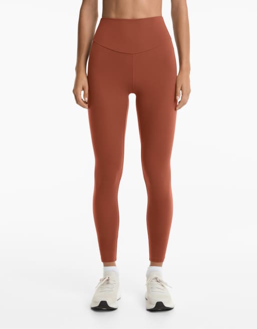 Oysho – Comfortlux – Rödbruna, ankellånga leggings med hög midja