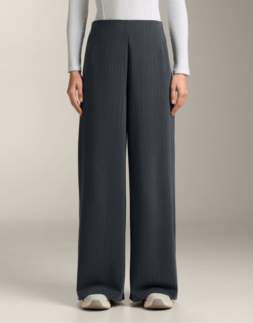 OYSHO – Grå, asymmetriska, randiga byxor i modal