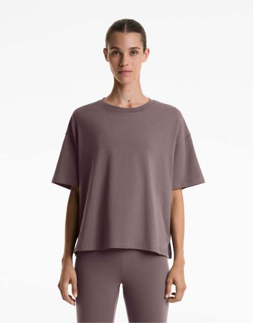 OYSHO – Grålila t-shirt med boxig passform och korta ärmar i bomullsmix