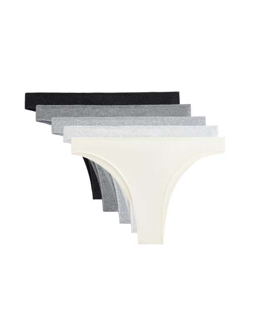 OYSHO – Gråmelerade, ribbade brazilian-trosor i bomullsmix, 5-pack