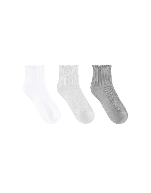 OYSHO – Gråmelerade strumpor i bomullsmix med rullfåll, 3-pack