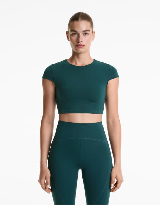 OYSHO – Havsgrönt sportlinne med korta ärmar och kompression