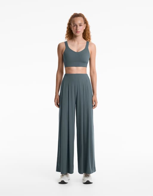 Oysho – Light Touch – Antracitblå byxor med vida ben