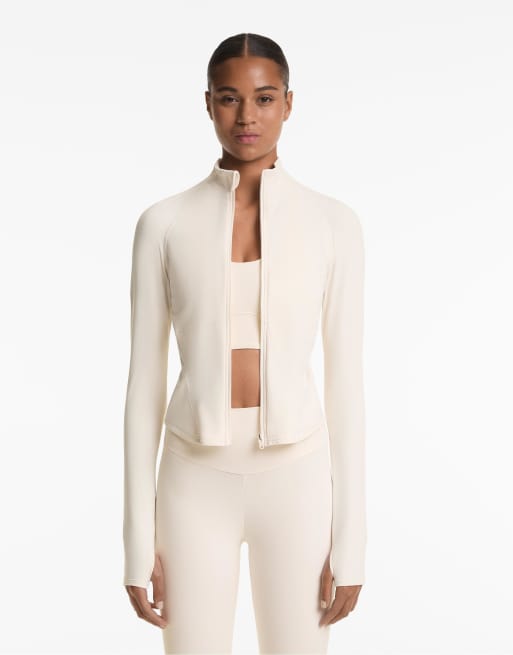 Oysho – Ljus naturvit, lätt, varm jacka med sömmar