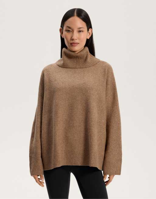 OYSHO – Ljusbrun, melerad, stickad, mjuk tröja i oversize med polokrage
