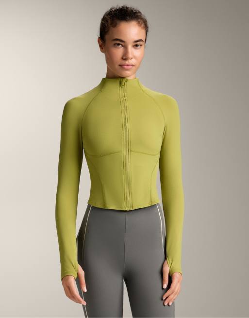 Oysho – Ljusgrön, varm lättviktsjacka med dekorativa sömmar